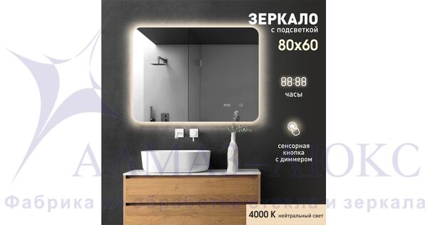 Зеркало с фоновой подсветкой,с сенсорной кнопкой и часами Hanoi 8060sс-4 (6