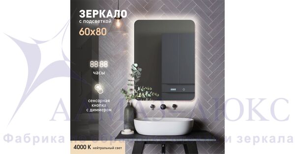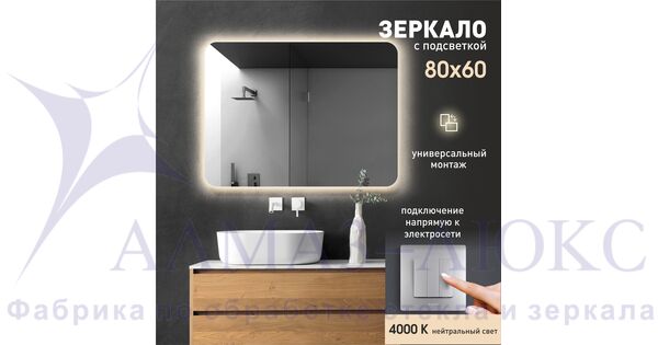 Зеркало с фоновой подсветкой Hanoi 6080-4 (60х80см) - нейтральный светколлекция&