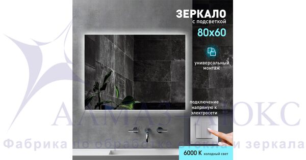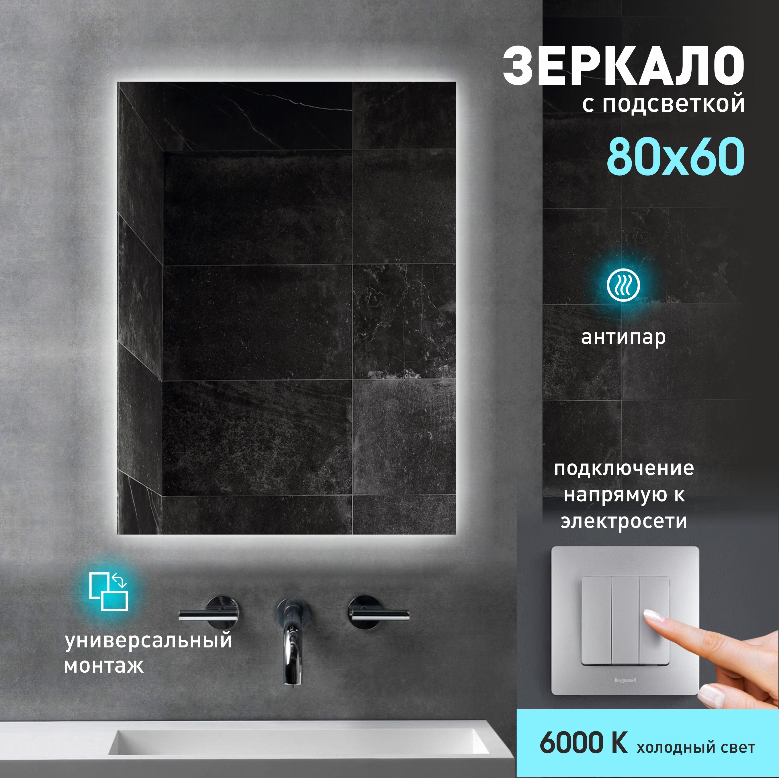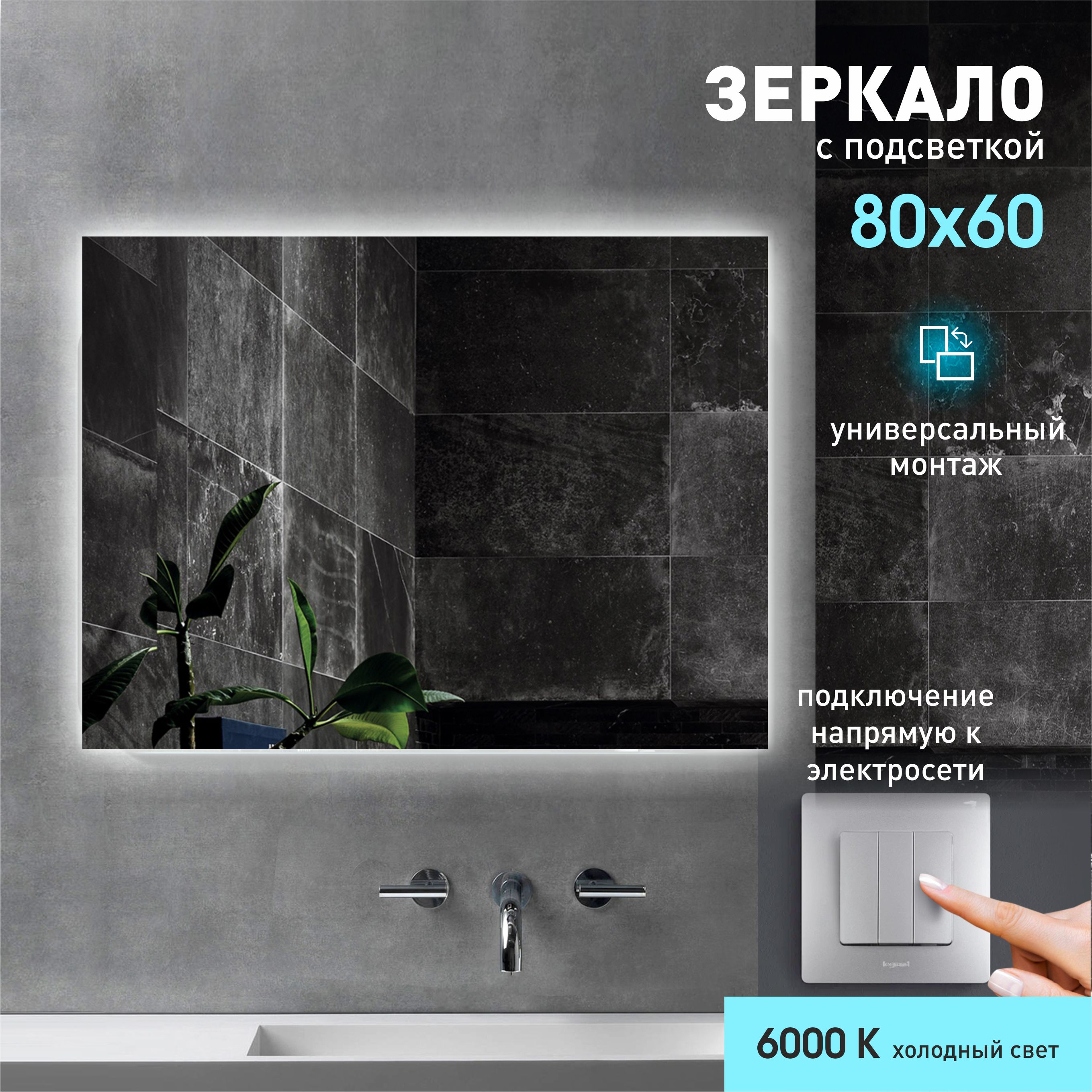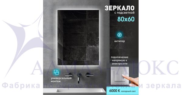 Зеркало с фоновой подсветкой и сенсорной кнопкой Delhi 8060s-6 (80х60 см) – хол