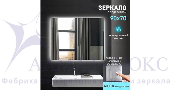 Зеркало с фоновой подсветкой и сенсорной кнопкой Delhi 9070s-6 (90х70 см) – хол