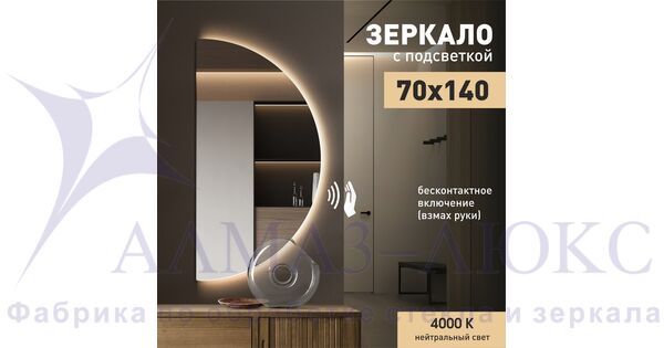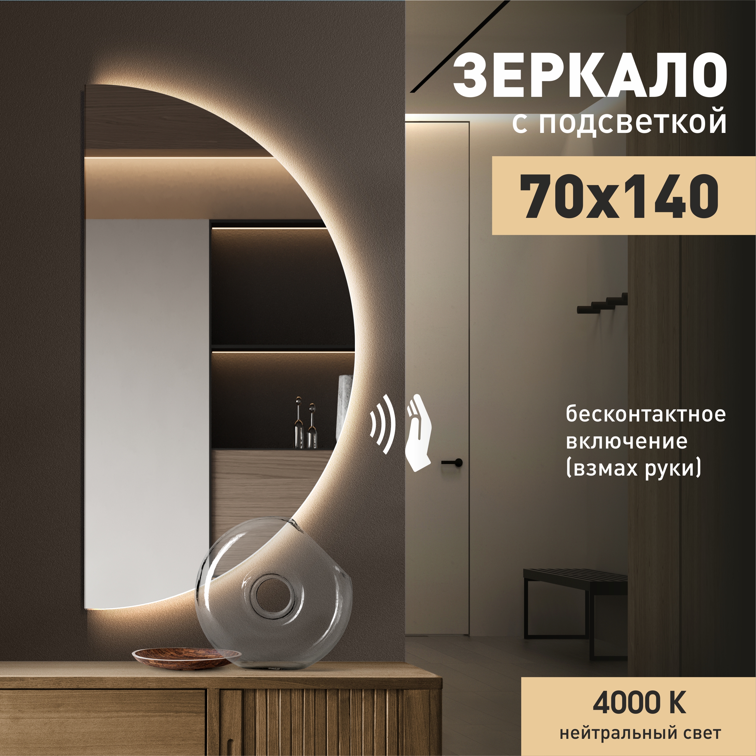 Зеркало с фоновой подсветкой, с торцевым датчиком движения ЗП-165(140*70 с