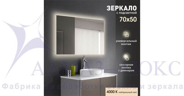 Зеркало с фоновой подсветкой, сенсорной кнопкой Delhi 7050s-4 (70х50 см)- нейтр