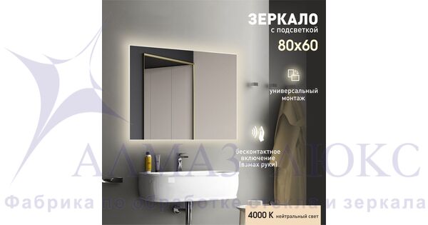 Зеркало с фоновой подсветкой, с датчиком движения Delhi 8060d-4 (80х60