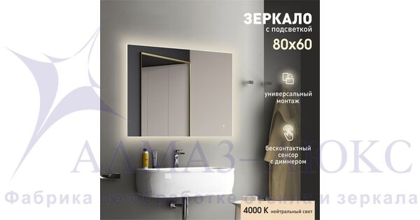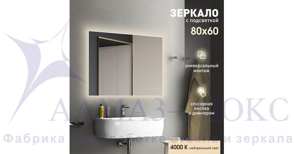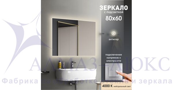 Зеркало с фоновой подсветкой, сенсорной кнопкой Delhi 8060s-4 (80х60 с