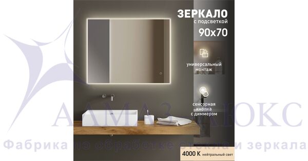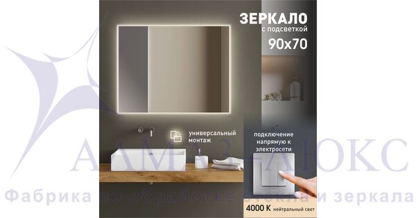 Зеркало с фоновой подсветкой Delhi 9070-4 (90х70 см) - нейтральный све