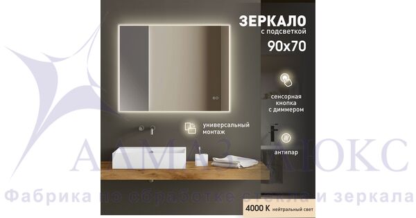 Зеркало с фоновой подсветкой, сенсорной кнопкой Delhi 9070s-4 (90х70 с