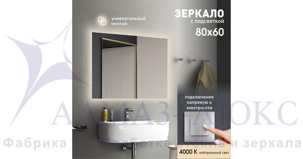 Зеркало с фоновой подсветкой Delhi 8060-4 (80х60 см) - нейтральный све