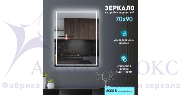 Зеркало с фронтально-фоновой подсветкой, c сенсорной кнопкой Dakar 9070s-6 (90х7