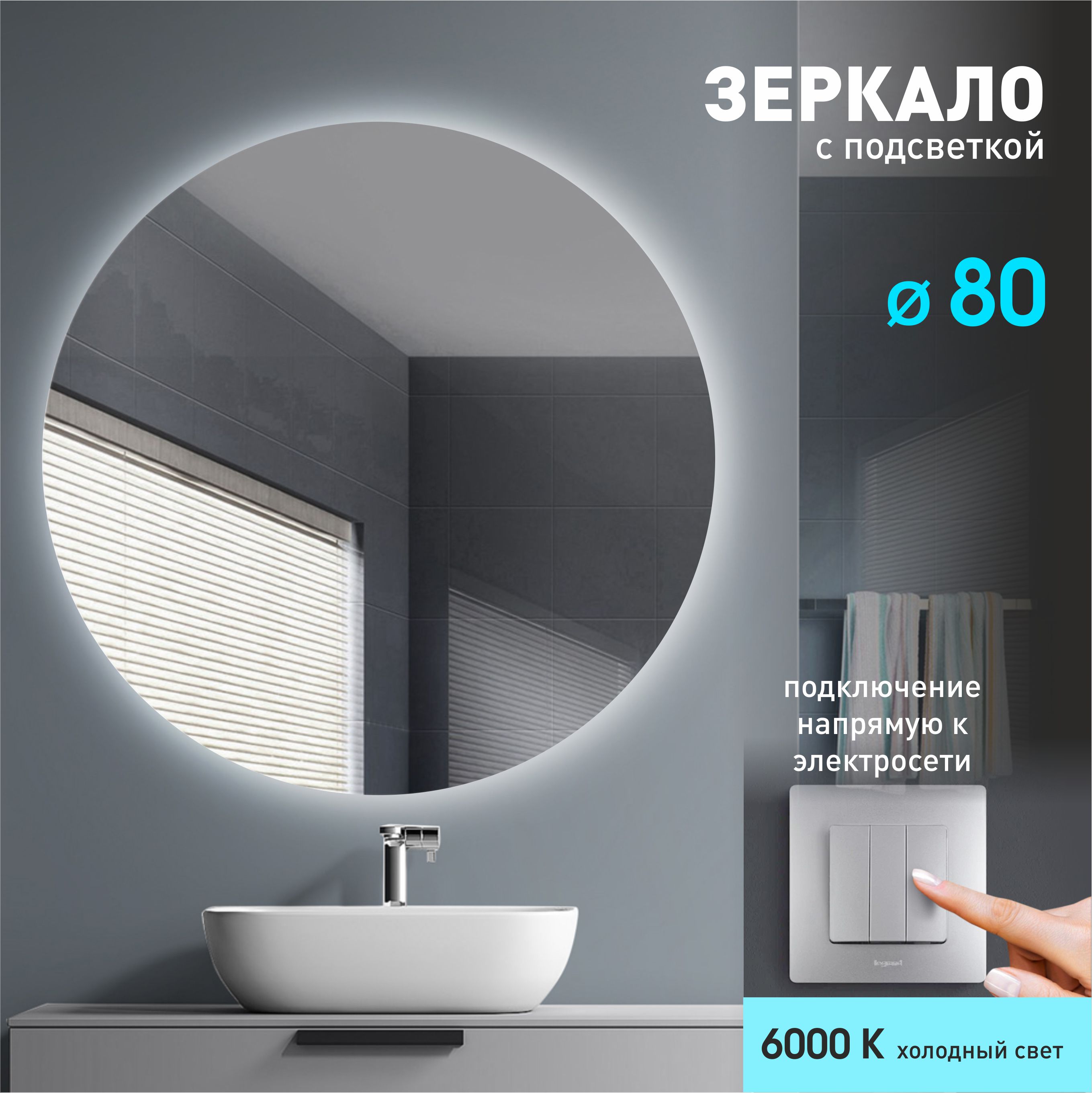 Зеркало с фоновой подсветкой Tokyo 80-6 (D 80см) – холодный светколлекция