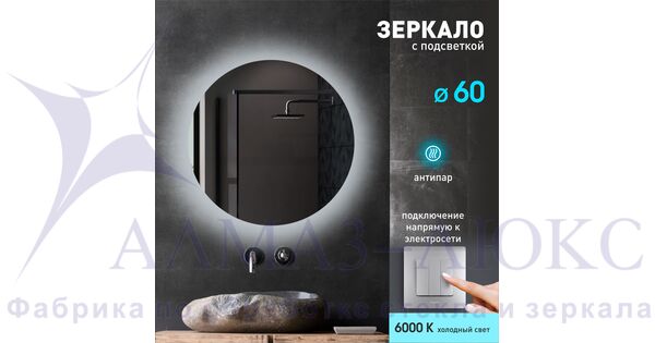 Зеркало с фоновой подсветкой и подогревом Tokyo 60h-6 (D 60 см) – холодный светк