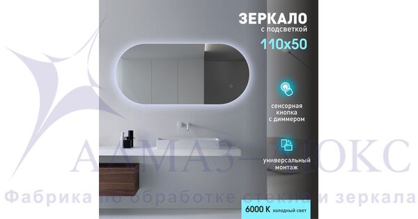 Зеркало с фоновой подсветкой и сенсорной кнопкой Seoul 11050s-6 (110х50 см) –