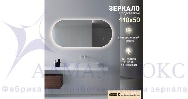 Зеркало с фоновой подсветкой и сенсорной кнопкой Seoul 11050s-4 (110х50 см) – не