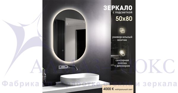 Зеркало с фоновой подсветкой и сенсорной кнопкой Seoul 8050s-4 (80х50см) - нейтр