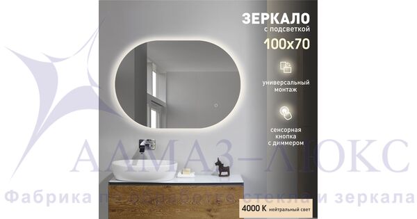 Зеркало Алмаз-Люкс ЗП-80 (57х77см)Тип: зеркало с LED подсветкойНазначение: д