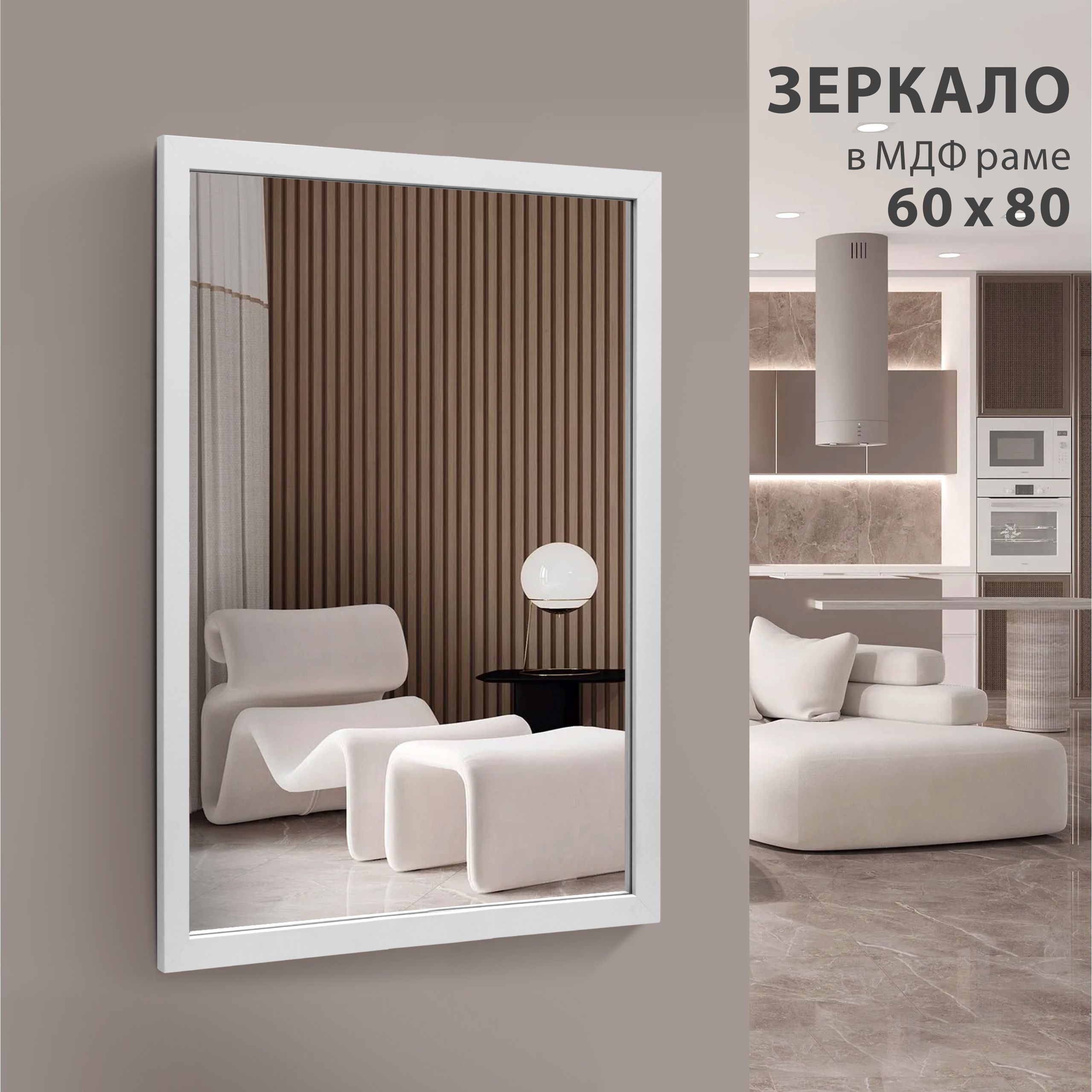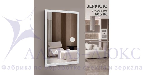Зеркало "MF-1 8060 white" (800*600 мм) в раме МДФ, цвет - "белый"серия М (зеркал