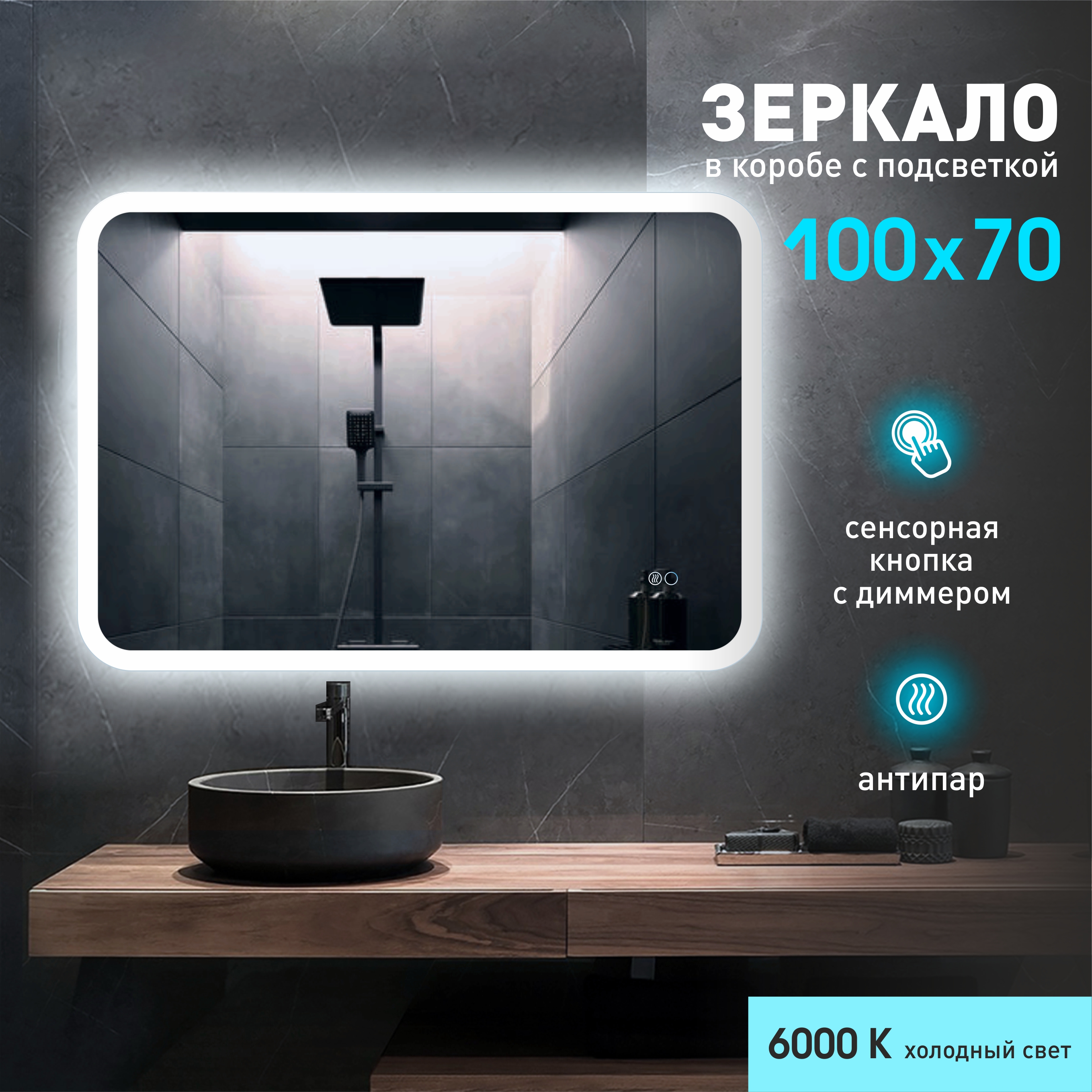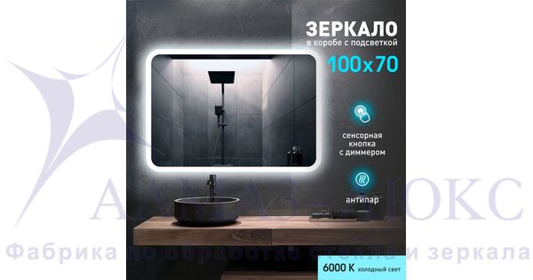 Зеркало с фоново-фронтальной подсветкой, с сенсорной кнопкой Palmer 10070s-6 ( 1
