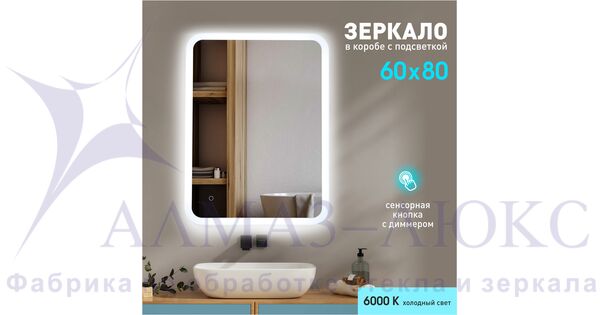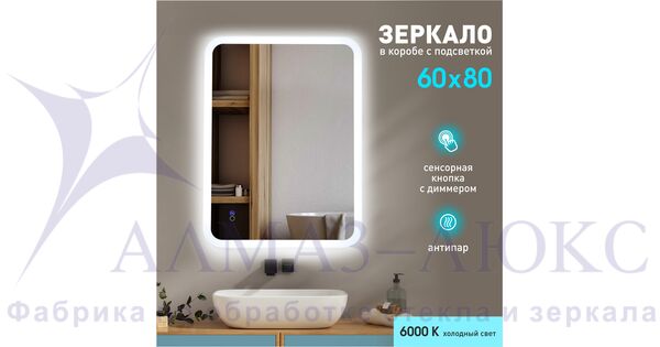 Зеркало с фоново-фронтальной подсветкой, с сенсорной кнопкой Palmer 8060s-6 ( 80