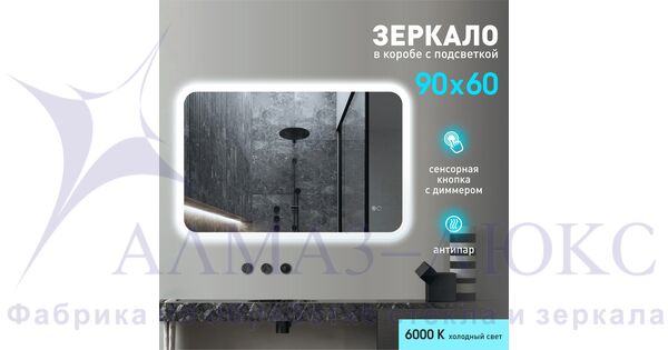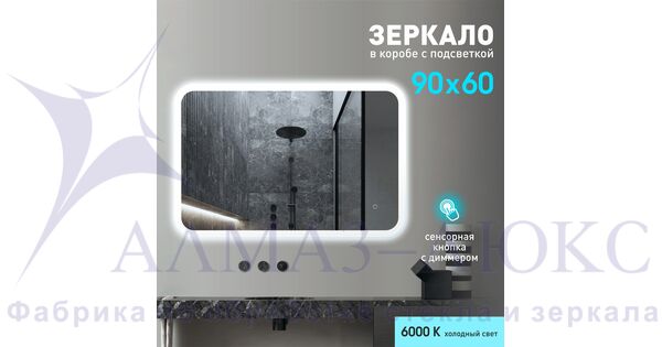 Зеркало с фоново-фронтальной подсветкой, с сенсорной кнопкой Palmer 9060s-6 ( 90