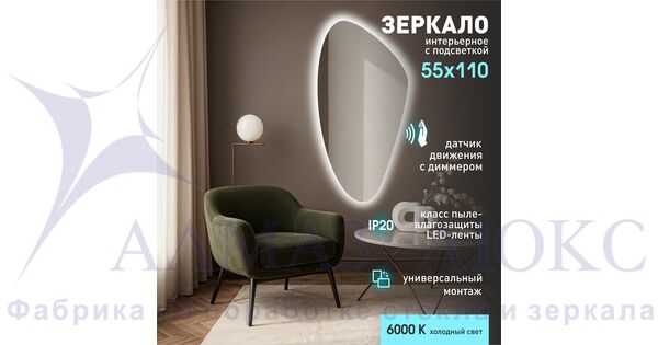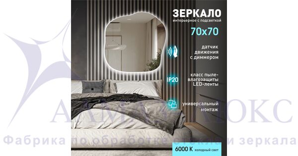 Зеркало с фоновой подсветкой, с торцевым датчиком движения и с УФ-ок