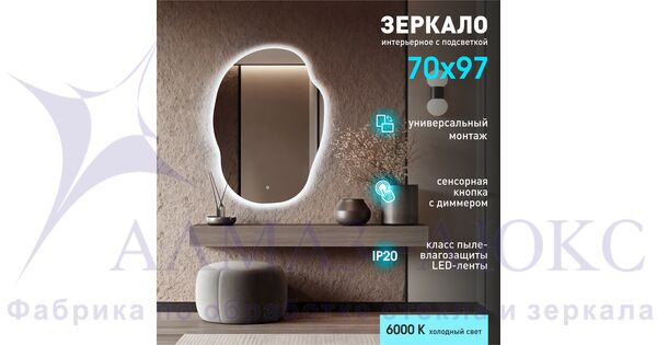 Зеркало с фоновой подсветкой и сенсорной кнопкой Fiji 9770s-6 (97х70 см) - холод