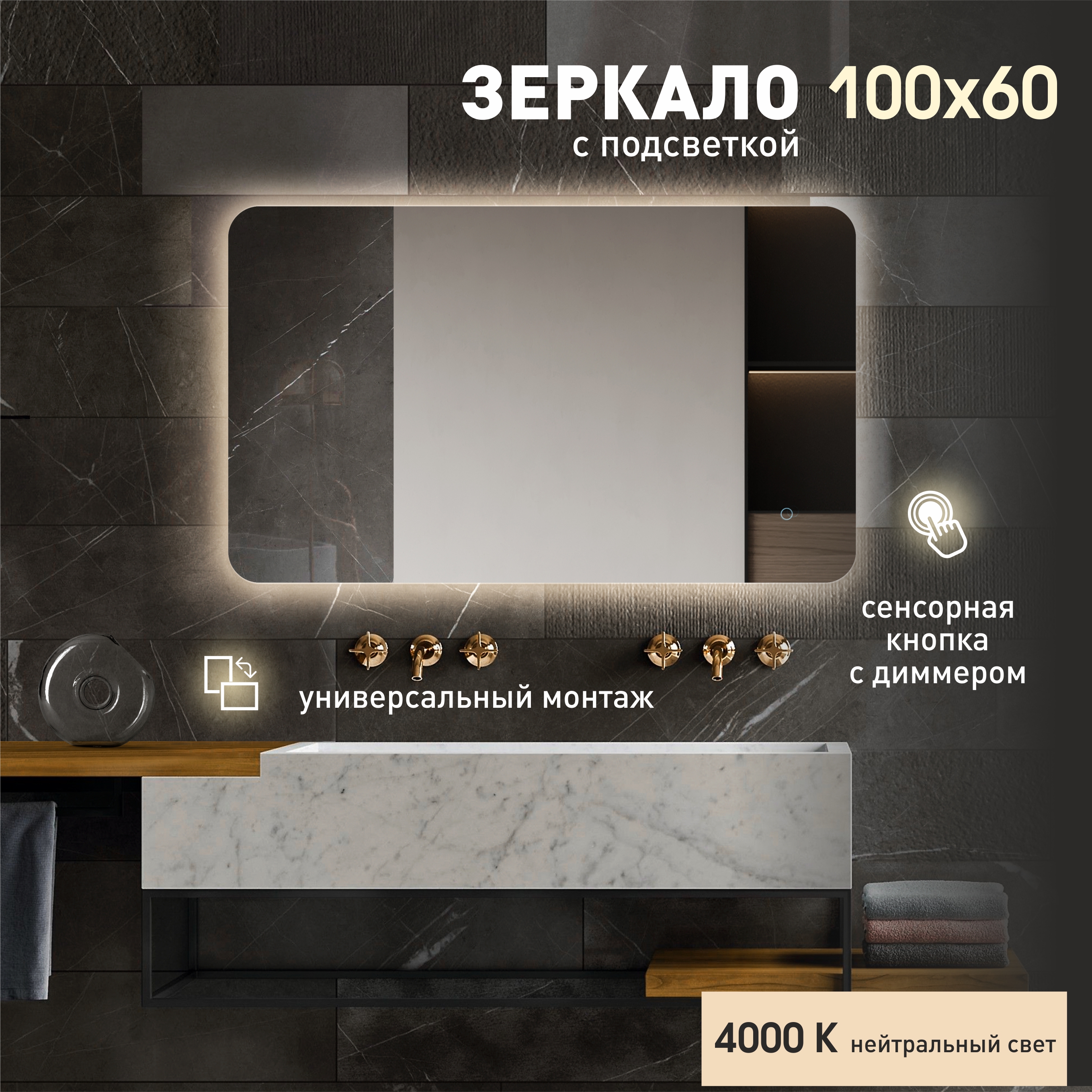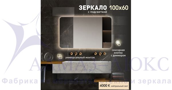 Зеркало с подсветкой, с сенсорной кнопкой Hanoi 10060s-4 (100х60см) - нейтральны