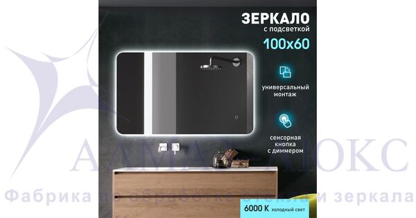 Зеркало с подсветкой, с сенсорной кнопкой Hanoi 10060s-6 (100х60 см) - хол