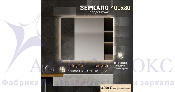 Зеркало с фоновой подсветкой, с сенсорной кнопкой Hanoi 10080s-4 (100х80см) - не