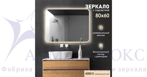 Зеркало с подсветкой, с датчиком движения Hanoi 6080d-4 (60х80см) - нейтральный