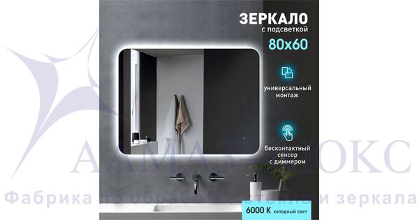 Зеркало с подсветкой, с датчиком движения Hanoi 6080d-6 (60х80см) - холодный све
