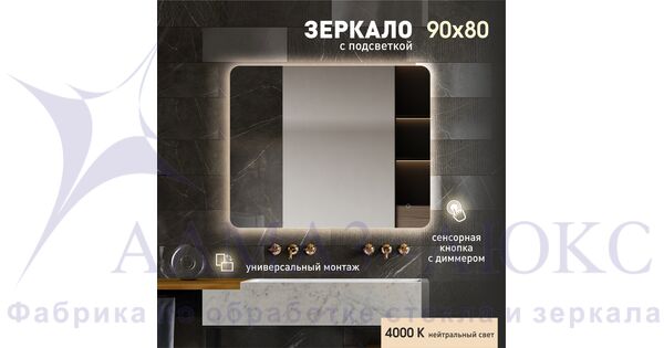 Зеркало с фоновой подсветкой, с сенсорной кнопкой Hanoi 9080s-4 (90*80 см) - ней
