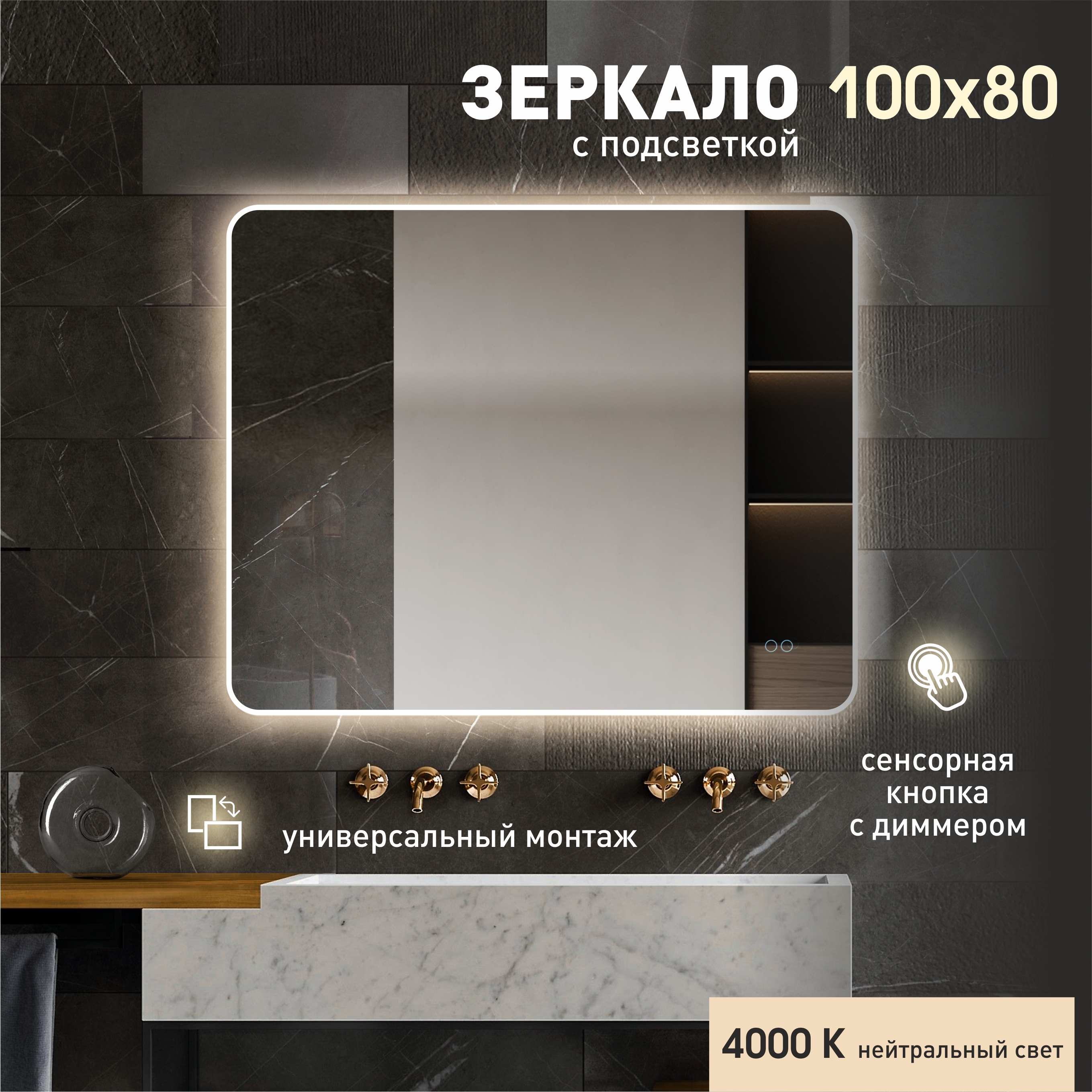 Зеркало с фоново-фронтальной подсветкой, с сенсорной кнопкой Milan 80100s-4 (80х