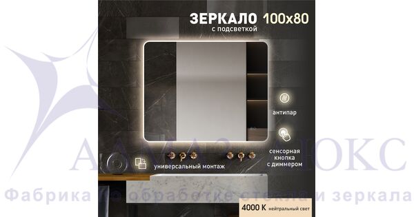 Зеркало с фоновой подсветкой, с сенсорной кнопкой, часами, датой, подогрев