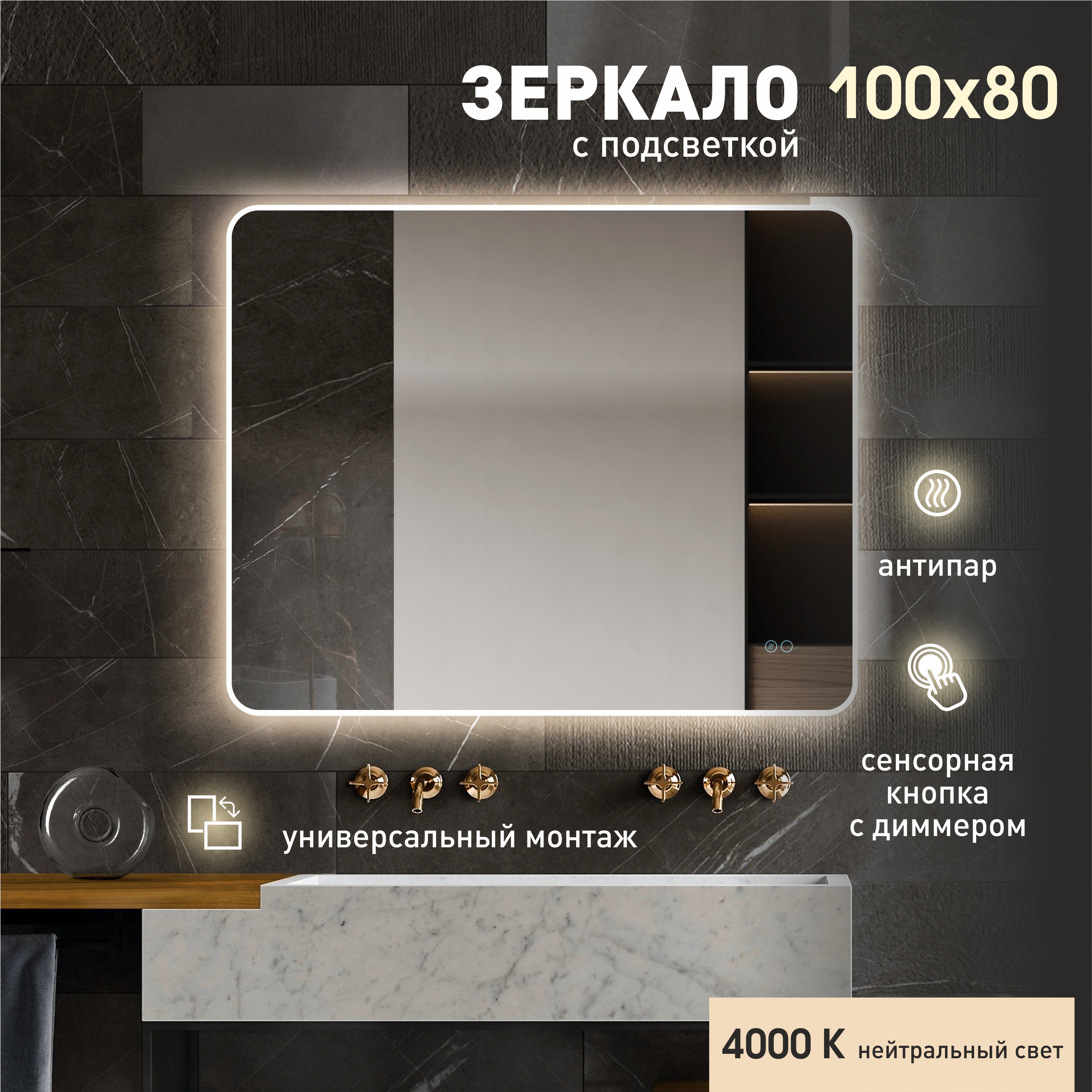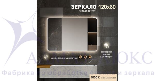 Зеркало с фоново-фронтальной подсветкой, с сенсорной кнопкой Milan 80120s-4 (80х