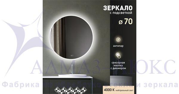 Зеркало с фоновой подсветкой и подогревом Tokyo 60h-6 (D 60 см) – холодный светк