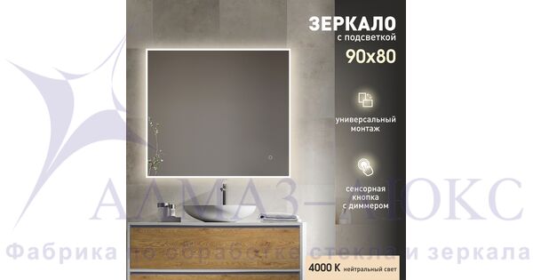 Зеркало с фоново-фронтальной подсветкой и сенсорной кнопкой Dublin 9080s-4 (90х8