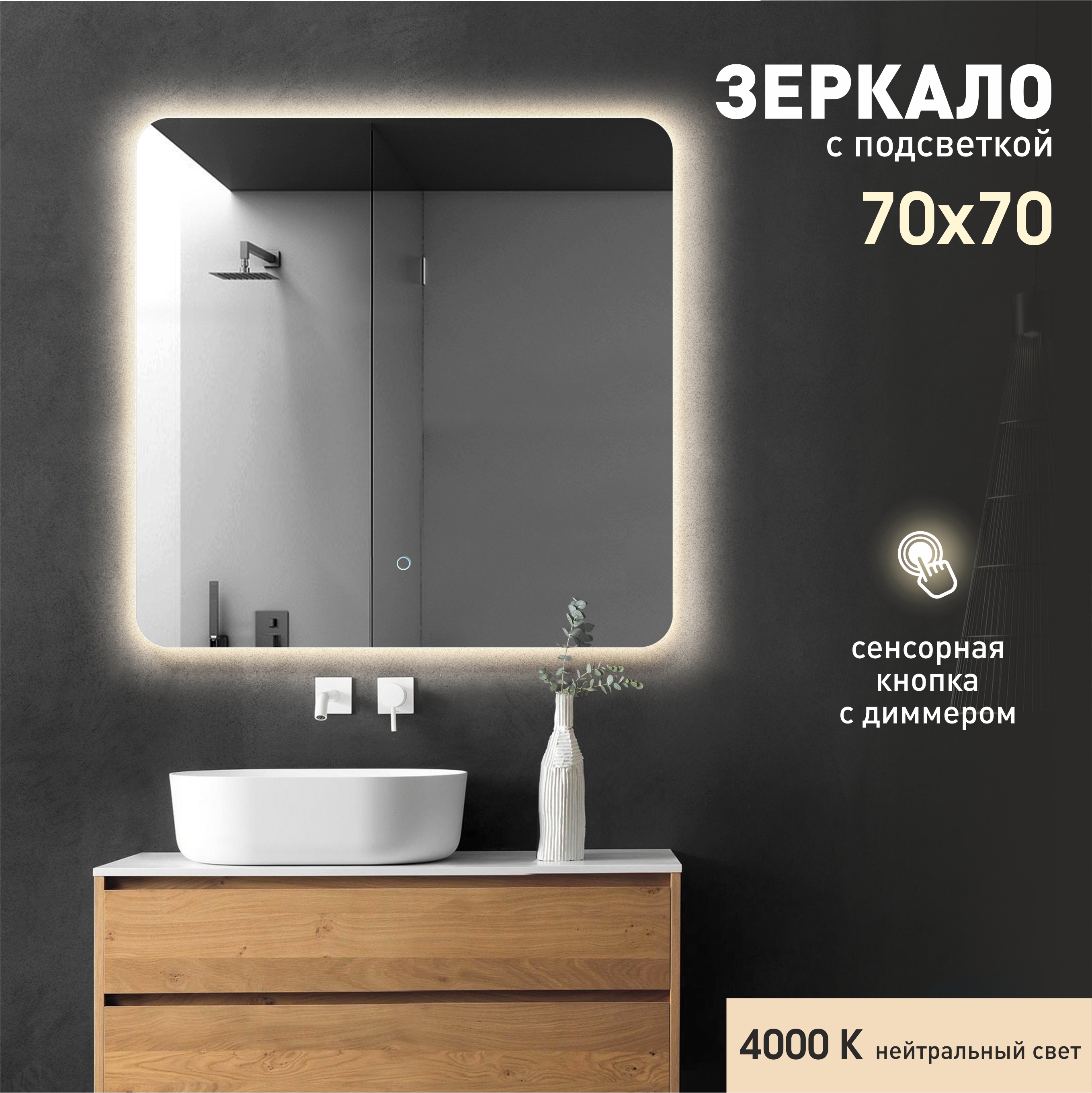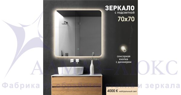 Зеркало с фоновой подсветкой, с сенсорной кнопкой Hanoi 7070s-4 (70х70см) - нейт