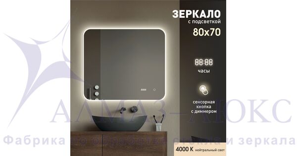 Зеркало с фоново-фронтальной подсветкой,сенсорной кнопкой и часами Milan 8070sc-