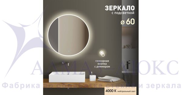 Зеркало с фоновой подсветкой и сенсорной кнопкой Tokyo 50s-4 (d 50 см) -