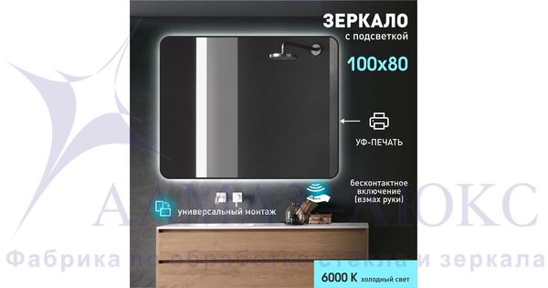 Зеркало с фоновой подсветкой, с торцевым датчиком движения и чёрной УФ-ок