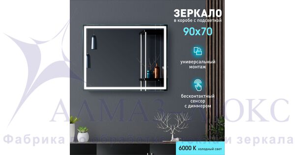 Зеркало с фронтальной подсветкой и датчиком движения Dallas 9070d-6 (90х70