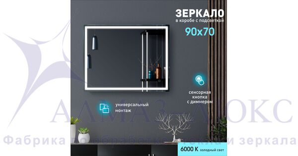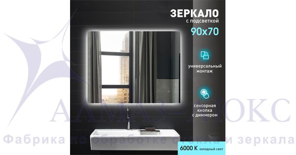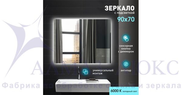 Зеркало с фронтальной подсветкой, с сенсорной кнопкой Dallas 9070s-6 (90х70 см)
