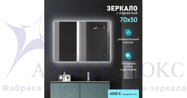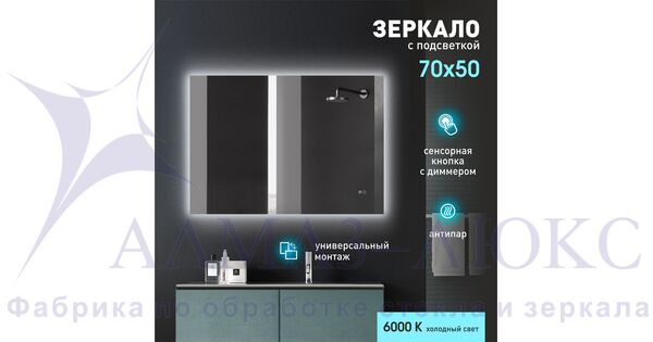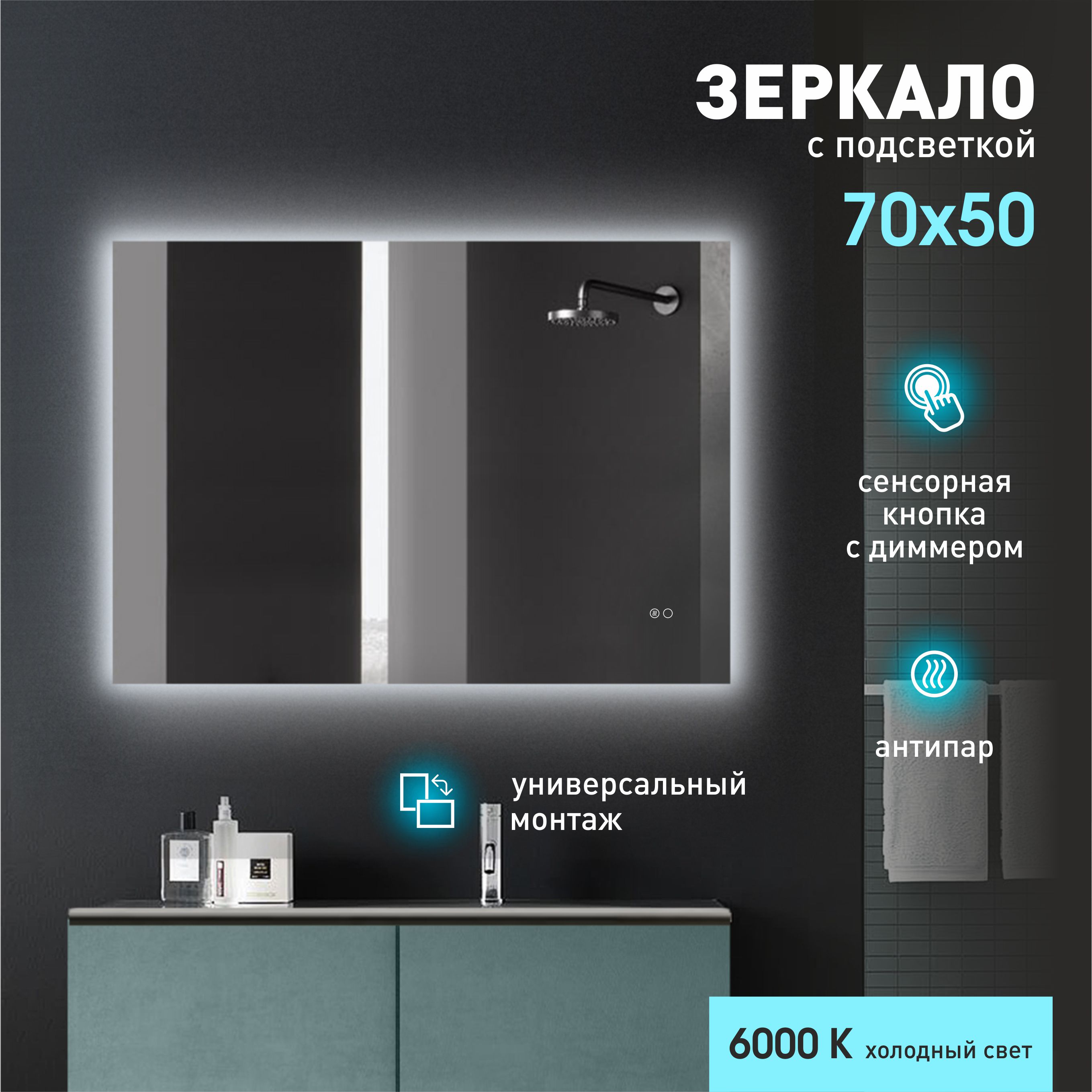 Зеркало с фоновой подсветкой, с сенсорной кнопкой Delhi 7050s-6 (70х50 см) – хол