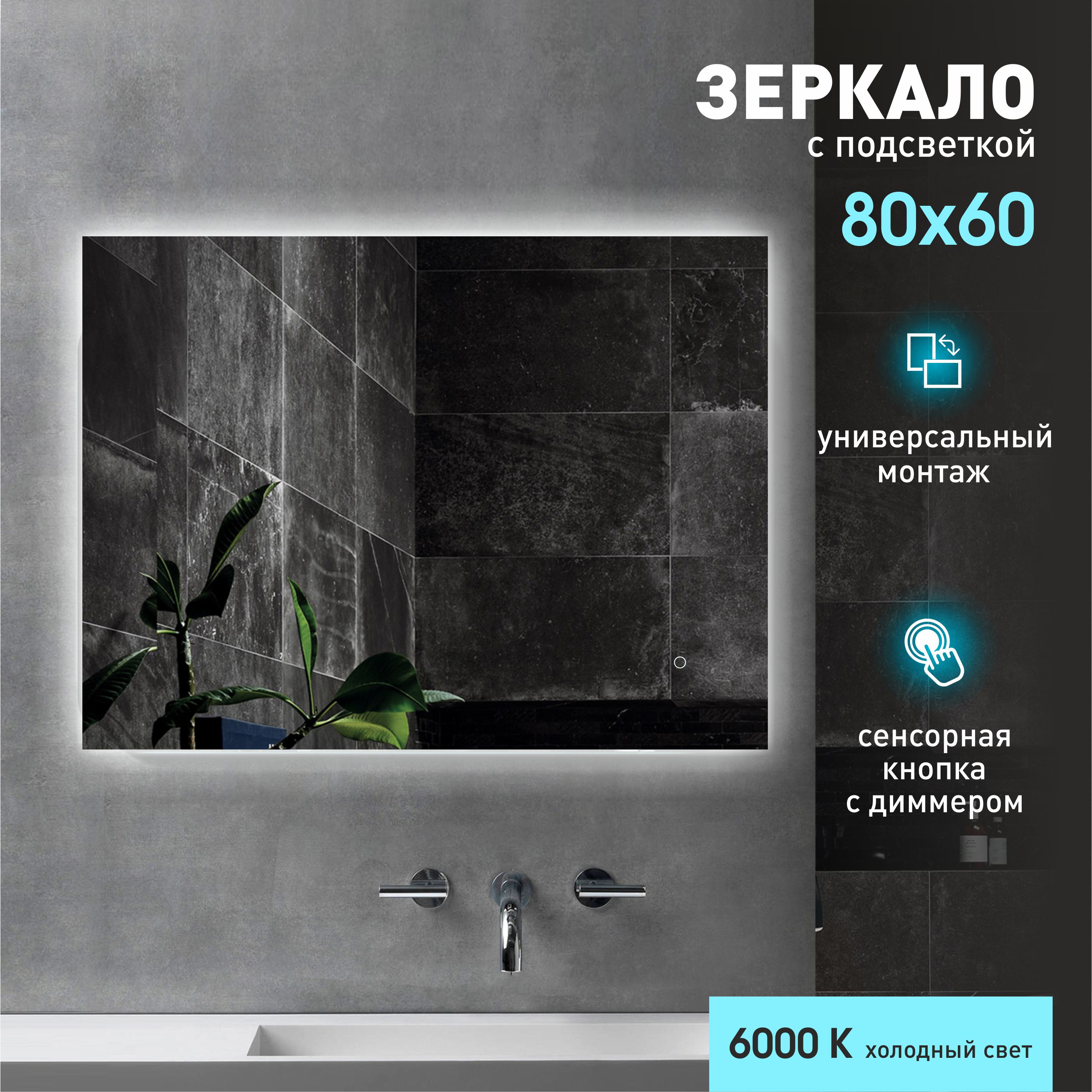 Зеркало с фоновой подсветкой и сенсорной кнопкой Delhi 8060s-6 (80х60 см) – хол