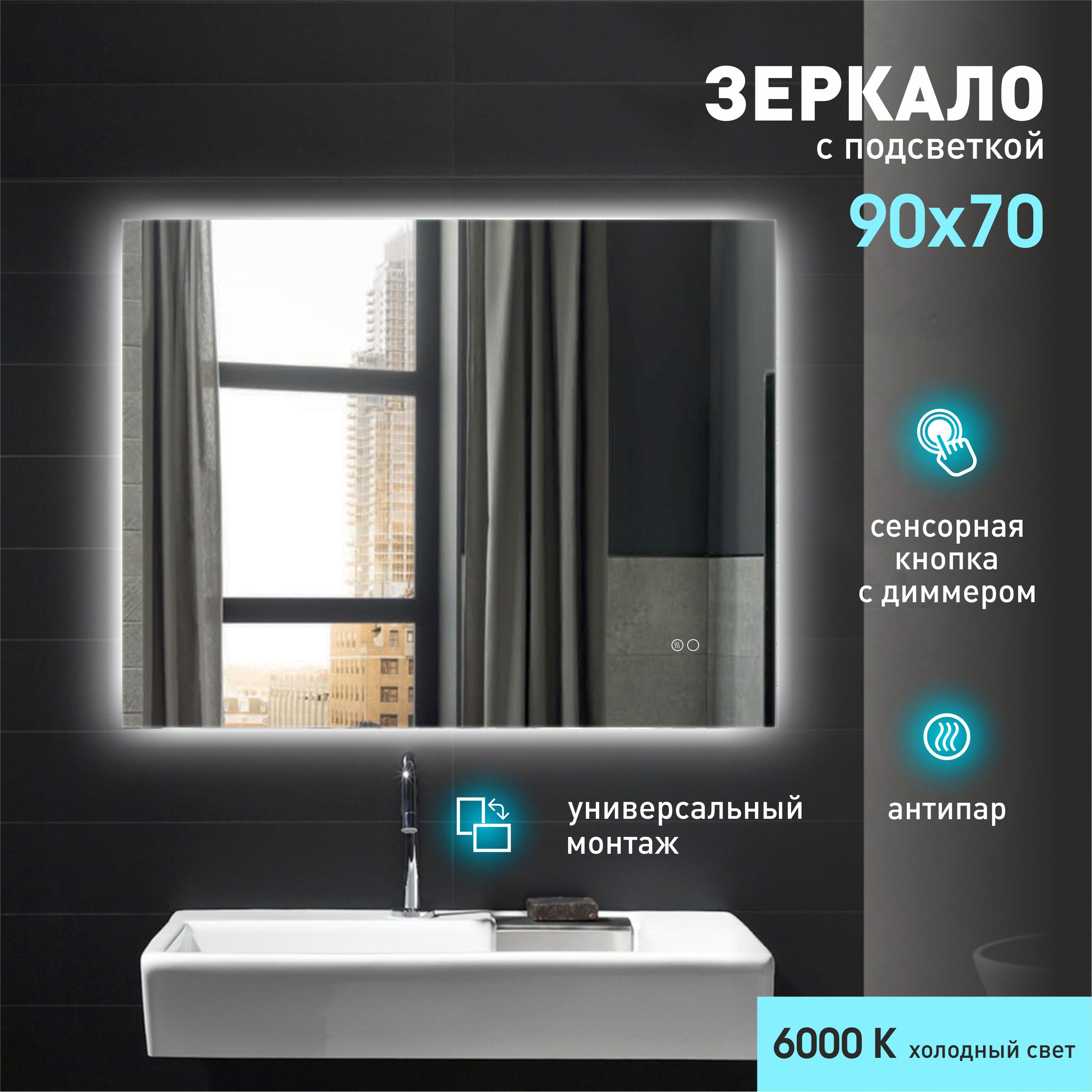 Зеркало с фоновой подсветкой и сенсорной кнопкой Delhi 9070s-6 (90х70 см) – хол