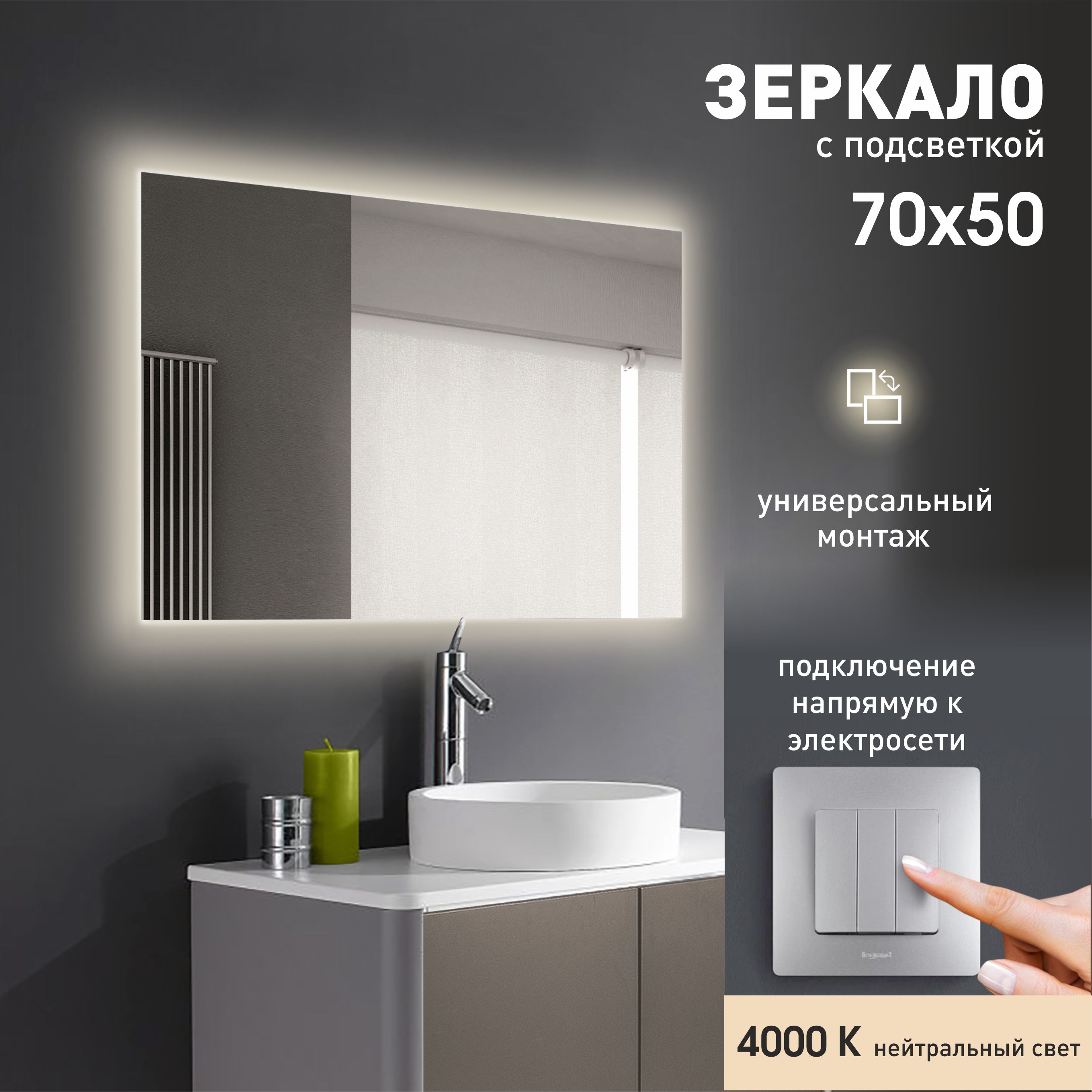 Зеркало с фоновой подсветкой Delhi 7050-4 (70х50см)коллекция «Tr