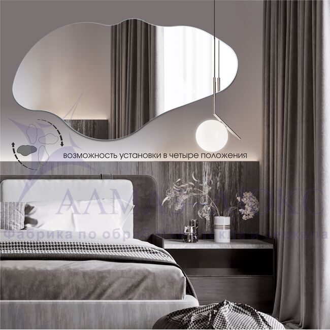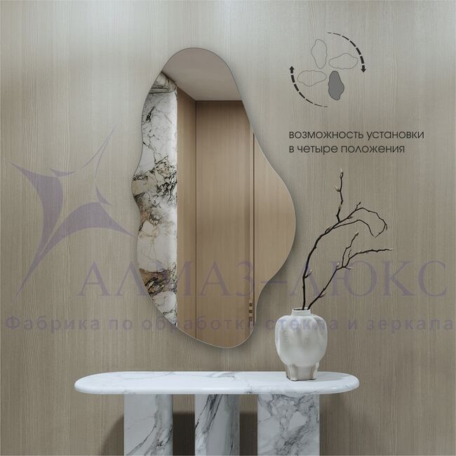 Зеркало необычной фигурной формы со шлифованной кромкой — это стильный элемент интерьера, который сочетает в себе функциональность и эстетическую привлекательность.