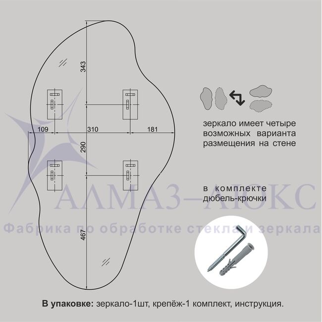 Высококачественное стекло обеспечивает отличное отражение, что делает его идеальным для использования в ванной комнате, прихожей или спальне. Зеркало может увеличивать пространство и освещённость комнаты, создавая ощущение простора.