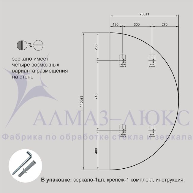 Зеркало полукруглой формы с шлифованной кромкой — это стильный элемент интерьера, который сочетает в себе функциональность и эстетическую привлекательность.