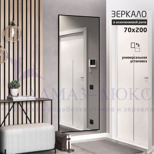 MA4-20070 black Зеркало прямоугольное бытовое в алюминиевой раме 2000*700 мм (чёрный)