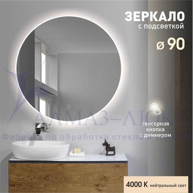 Зеркало с фоново-фронтальной подсветкой и сенсорной кнопкой Oslo 90s-4 (D 90 см) - нейтральный свет